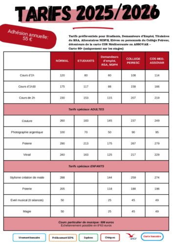 Tarifs annuel